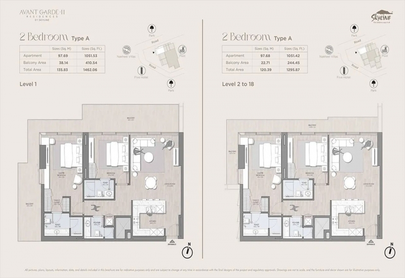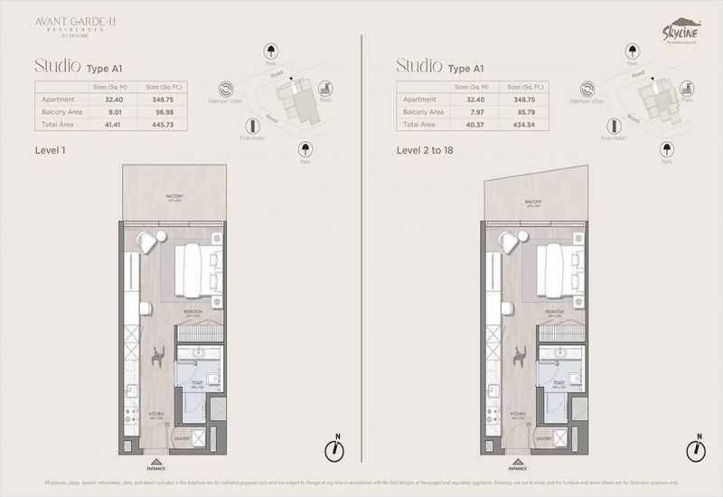 Studio Area: 431 Sq.ft - 445 Sq.ft 1 Bed Apartments Area: 726 Sq.ft - 890 Sq.ft 2 Beds Apartments Area: 1295 Sq.ft - 1462 Sq.ft