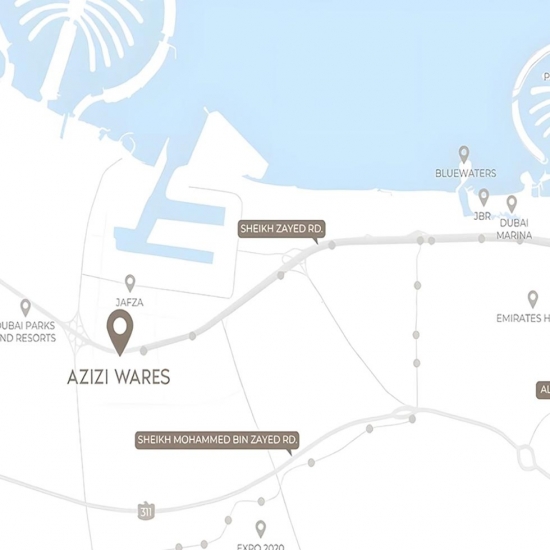Strategically located in Jebel Ali, Azizi Wares offers effortless access to key business zones, industrial areas, and entertainment hubs across Dubai. Residents can enjoy proximity to the city’s main highways, metro connections, and the iconic Dubai Expo site, ensuring that work, leisure, and lifestyle destinations are always within easy reach.