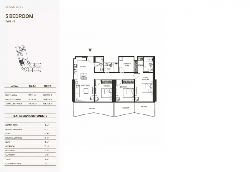 Area: 1549 Sq.ft, 1557 Sq.ft, 1608 Sq.ft