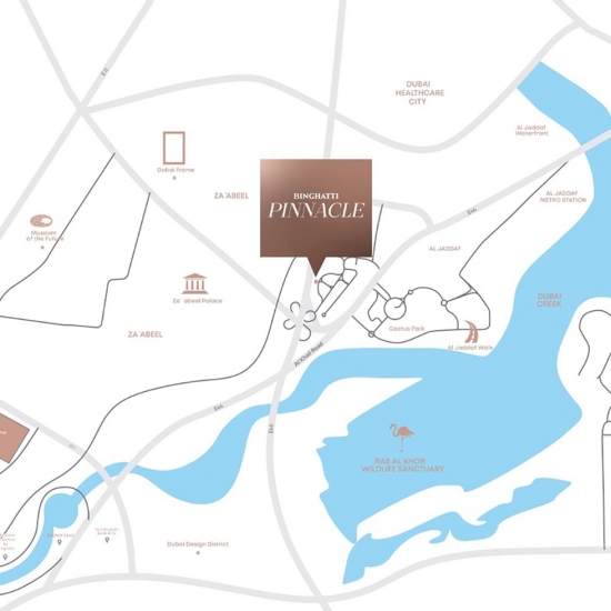 Strategically located in Al Jaddaf, the development provides seamless access to Dubai’s key business districts, entertainment hubs, and transport networks. Its proximity to metro stations and major roadways ensures effortless connectivity across the city, while the neighborhood itself offers a blend of cultural, recreational, and lifestyle destinations. Binghatti Pinnacle perfectly combines the appeal of urban convenience with modern, elevated living, making it an ideal choice for young professionals, families, and investors seeking a dynamic yet serene address in Dubai. The community emphasizes both luxury and practicality, allowing residents to enjoy a well-rounded lifestyle defined by comfort, sophistication, and accessibility.