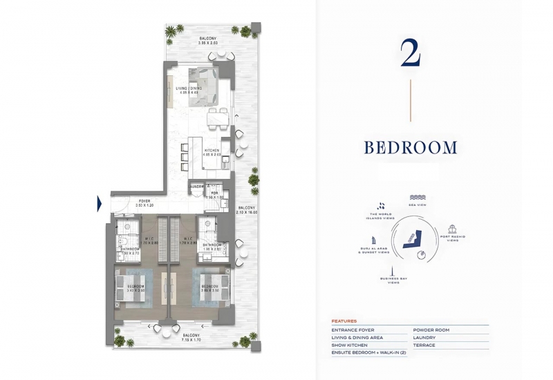 The residences are designed to reflect contemporary elegance while embracing a relaxed seaside mood. Expansive layouts, large windows, and refined finishes allow natural light and panoramic water views to become part of everyday life. The interiors balance comfort with sophistication, making each home ideal for both serene private moments and vibrant social gatherings. Whether enjoyed as a primary residence or a lifestyle-focused investment, the apartments offer an atmosphere that feels exclusive yet welcoming.
