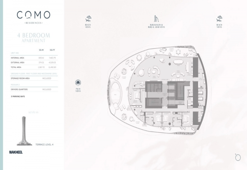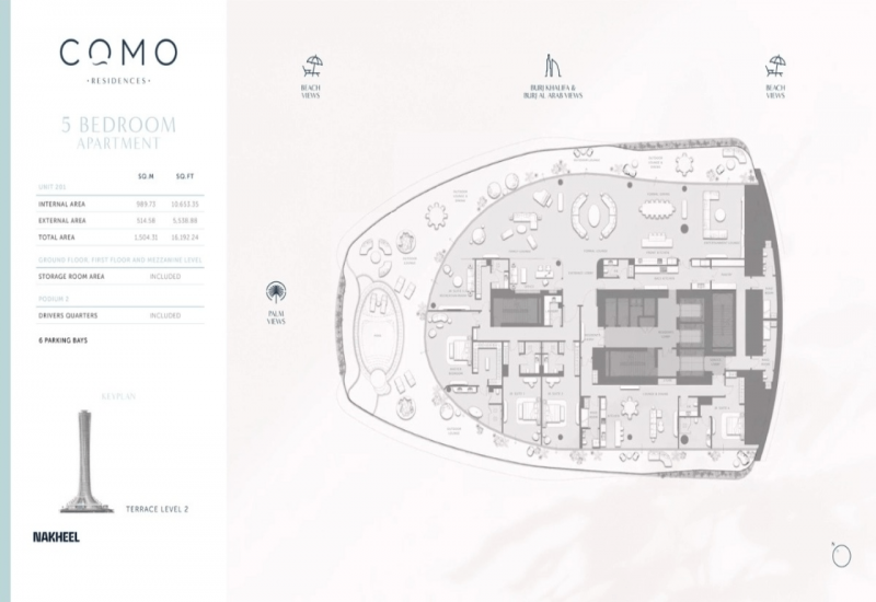 Situated on Palm Jumeirah, one of the world’s most prestigious destinations, Como Residences places residents at the center of Dubai’s most desirable lifestyle. Its prime location ensures effortless access to the city’s premier entertainment, dining, and shopping hubs, while maintaining a sense of exclusivity and tranquility away from the city’s rush. Surrounded by pristine beaches, lush landscapes, and high-end venues, this address harmoniously blends modern design with the timeless beauty of waterfront living. Como Residences by Nakheel is more than just a home—it is a statement of elegance and a celebration of Dubai’s luxury coastal lifestyle.