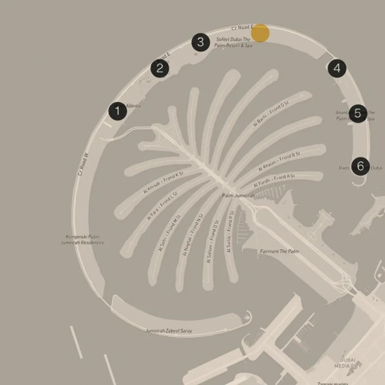 Set in the heart of Palm Jumeirah, Ela offers unmatched connectivity to Dubai’s finest destinations. Exclusive dining venues, luxury resorts, and designer shopping are moments away, while key landmarks like Downtown Dubai and Dubai Marina are easily accessible. With its flawless design, resort-style amenities, and iconic location, Ela by Omniyat represents the pinnacle of beachfront sophistication—a home where elegance meets the rhythm of the ocean.