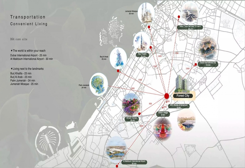 Set within the well-connected landscape of Majan, the development enjoys excellent proximity to essential conveniences, entertainment hubs and key destinations across Dubai. The neighbourhood offers quick access to premium schools, trusted medical centres, retail spots, dining avenues and recreational attractions, making life seamlessly convenient for residents of all ages. Surrounded by greenery and supported by strong connectivity, Forest City Tower stands as an appealing residential destination where nature and urban living come together beautifully.