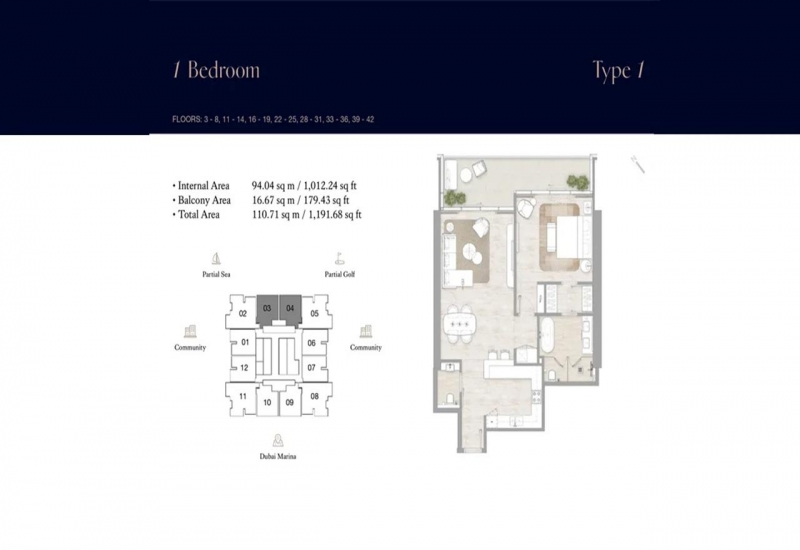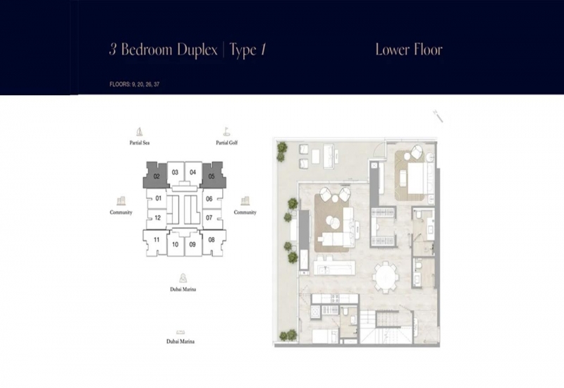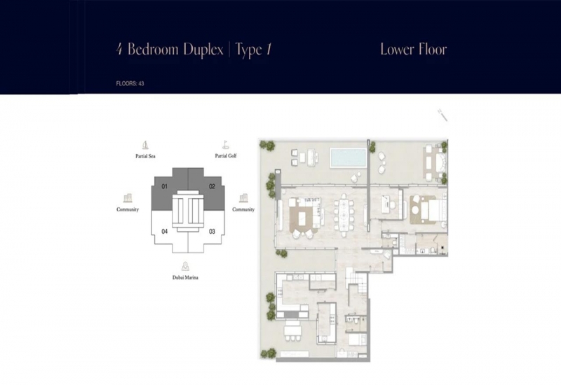 Adding a unique touch of leisure, residents can enjoy virtual golf experiences that bring an engaging and interactive dimension to their lifestyle. This blend of relaxation, recreation and wellness ensures that each moment within the community feels complete, meaningful and aligned with modern living expectations. Surrounding the residences is the captivating environment of Dubai Marina, where waterfront promenades, fine dining, entertainment spots and iconic urban attractions create a setting that is dynamic yet deeply serene. The project’s strategic position ensures excellent access to major transport routes, business hubs and lifestyle destinations, making it an address that seamlessly balances convenience with exclusivity.