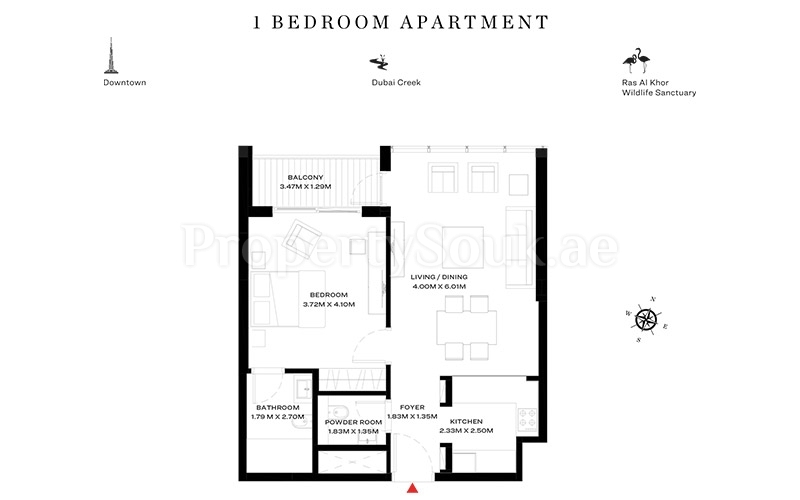 1 BR Apartment:-