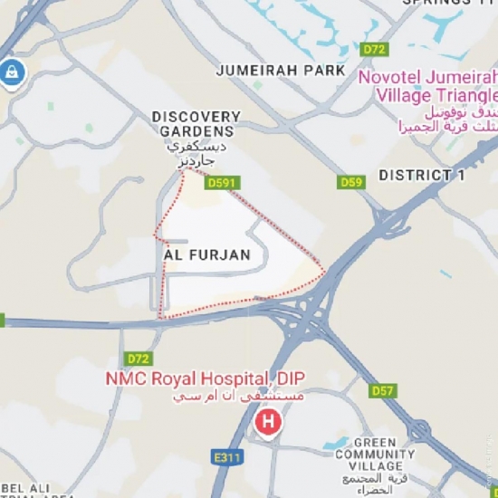 Metro/Railway: Al Furjan Metro Station, Discovery Gardens Metro Station, Jebel Ali Metro Station