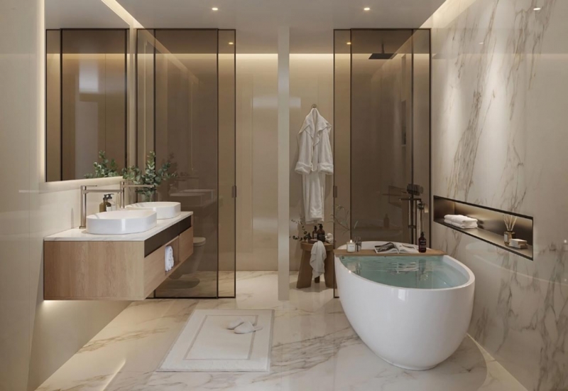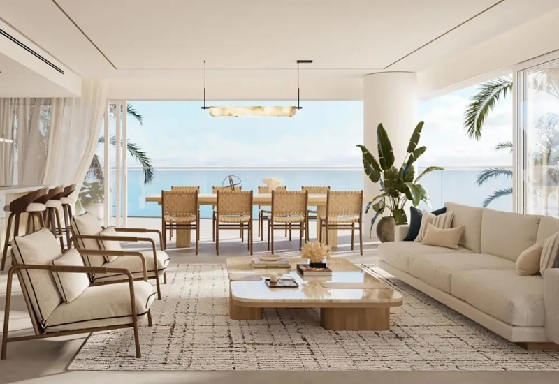 Fahid Beach Residences emerges as a coastal sanctuary where every horizon, every moment, and every space is attuned to the rhythm of water, light, and connection. Here, one-, two-, three-, and four-bedroom apartments, duplexes, penthouses and townhouses come together in a masterful composition that feels both intimate and expansive. The architecture frames views toward shoreline infinity pools, and indoors, living and dining areas flow toward terraces or windows that seem to dissolve the boundary between interior and sea. Finishes are refined and calming; materials feel earthy, textures resonate with tactility, and daylight is embraced as a daily companion.