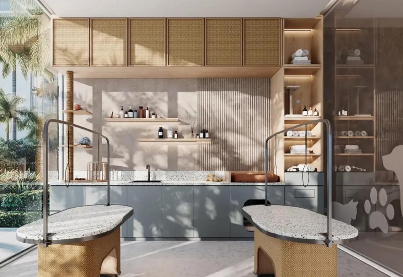 Wellness here is not an amenity—it is a living pulse. The gym overlooks water, inspiring movement beneath sky. Infinity pools, jacuzzis, and private spa zones beckon for moments of release. Children delight in splash pads and dedicated pools; families gather in shaded lounges, social kitchens, and co-working spaces. Wellness rituals extend deeper through saunas, steam rooms, yoga niches, and treatment rooms. Sport courts, outdoor fitness areas, and walking paths encourage a life in motion. Even pets are honored—with a spa and walking services designed to elevate their daily joy.