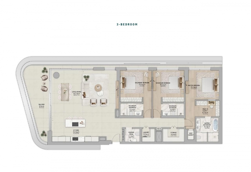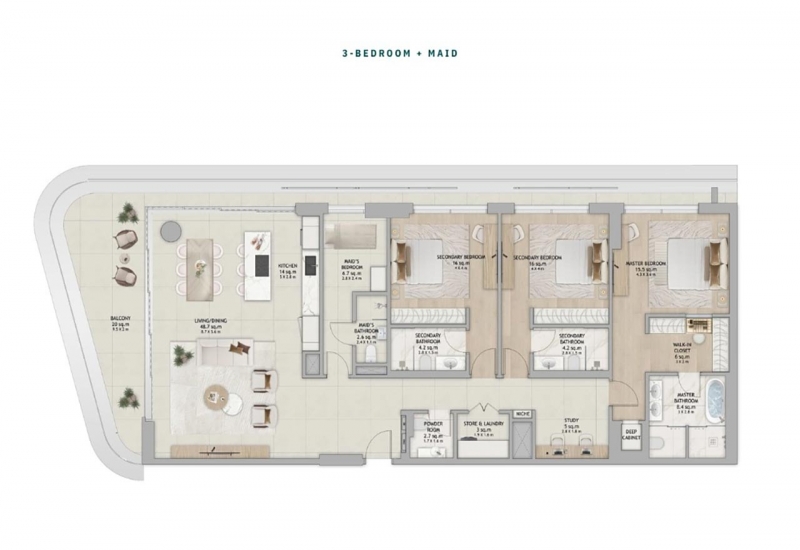 3 Bedroom + Maid Floor Plan