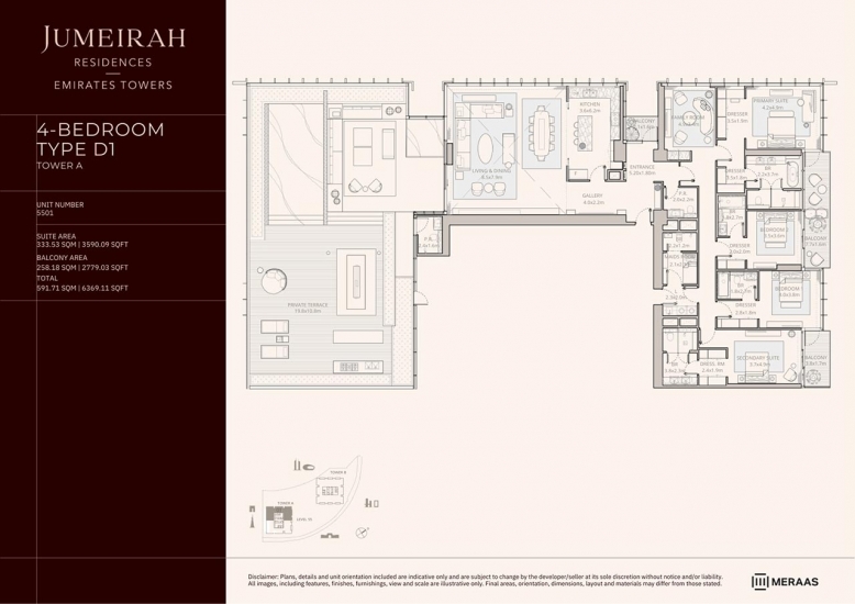 To further enhance the living experience, the development provides 24/7 concierge, valet, and housekeeping services, ensuring a seamless lifestyle defined by comfort and elegance. Residents also enjoy exclusive access to Jumeirah hospitality privileges, offering a curated range of world-class services and experiences. Its strategic location ensures unmatched connectivity, with major business hubs, entertainment landmarks, and cultural attractions just moments away, making it a perfect blend of luxury and convenience for discerning homeowners.