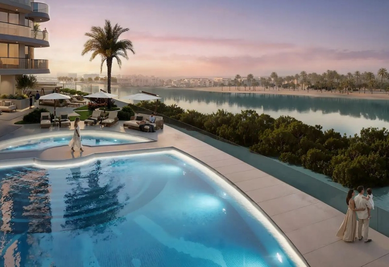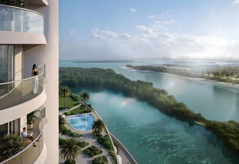 The development offers an expansive range of living options, from thoughtfully designed studios and one, two, and three bedroom apartments to generous two bedroom townhouses — each conceived to meet the aspirations of modern urban dwellers with impeccable taste. Floor-to-ceiling glazing, generous private balconies, and open-oriented layouts ensure that every residence is flooded with natural light and frames uninterrupted views of the shimmering waterways, lush mangrove canopy, or Abu Dhabi's glittering city skyline. Interiors draw from a refined coastal palette — warm timber, porcelain, and natural textures — creating spaces that feel simultaneously sophisticated and deeply calming. Every detail has been considered to place comfort, well-being, and beauty at the centre of daily life.
