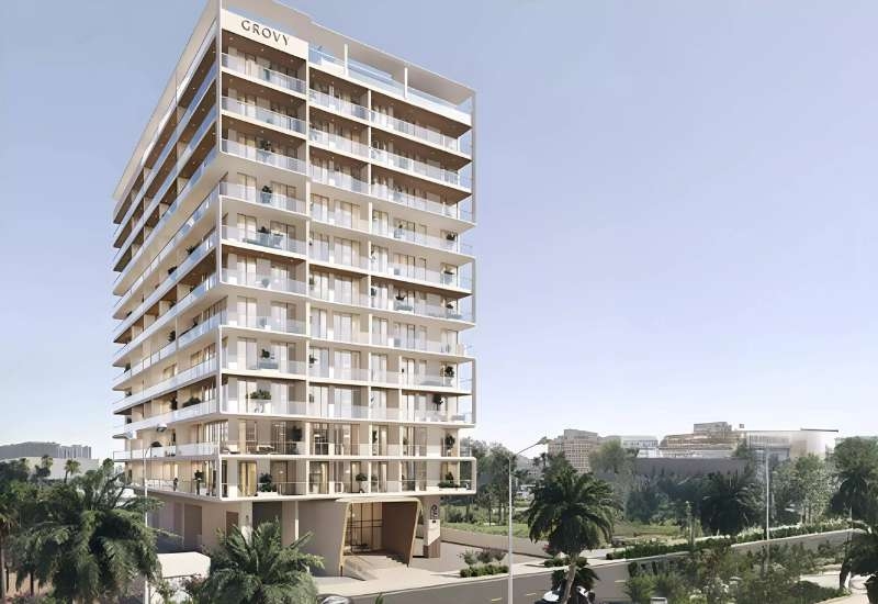 Rivo by Grovy is a striking new residential landmark rising twelve storeys above the green, tranquil landscape of Wadi Al Safa 5 within the Dubai Land Residence Complex — one of the most rapidly growing and infrastructure-rich residential communities in Dubailand. Developed by Grovy Real Estate Developers, the award-winning company with a legacy of excellence dating back to 1985, Rivo arrives as a bold architectural statement defined by its sculptural white facade, warm pine and dark wood accents, and expansive floor-to-ceiling glass surfaces that invite the outdoors in and allow every home to breathe. The design philosophy here is one of deliberate grace — form in motion, where soft curves, flowing layouts, and natural finishes combine to create not just a building, but a living sculpture that stands apart in one of Dubai fastest-evolving residential districts. With just one hundred and thirty-three residences across the entire tower, Rivo offers a low-density exclusivity that is increasingly rare in this segment of the Dubai market.