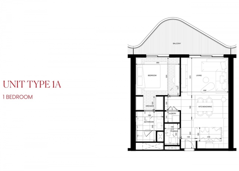 UNIT TYPE 1A-1Bedroom Floor Plan
