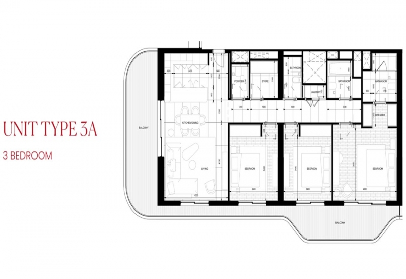 UNIT TYPE 3A-3Bedroom Floor Plan