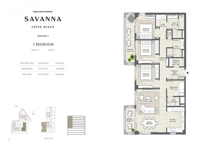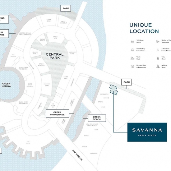 Savanna, a distinguished development by Emaar Properties, redefines luxury living in Dubai Creek Harbour. This exclusive community offers a selection of one, two, and three-bedroom apartments, each meticulously designed to blend contemporary elegance with serene waterfront vistas. Nestled within the vibrant Creek Beach sub-community, Savanna provides residents with unparalleled access to a pristine white sand beach, fostering a lifestyle of tranquility and sophistication.