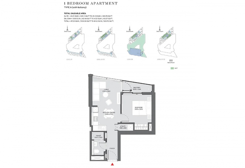 1 Bed Price:- AED 1,000,380 / AED 1,100,418