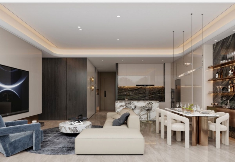The tower presents a meticulously curated collection of one, two, and three bedroom apartments, each crafted to the highest standards of modern design. Generous high ceilings, expansive windows, and thoughtfully optimised floor plans create interiors that feel inherently airy, luminous, and welcoming. Premium finishes and quality materials define every surface, ensuring that the aesthetic experience of each home is matched only by its functional comfort. Select residences extend this experience further with private pools, garden house formats, and smart room configurations that adapt seamlessly between living, working, and entertaining.
