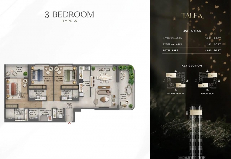 Talea by Beyond stands as an exquisite waterfront masterpiece in Dubai Maritime City, redefining the essence of luxury coastal living. Developed by Beyond, this stunning residential address presents a harmonious blend of contemporary design, refined craftsmanship, and a serene maritime lifestyle. The project features a curated selection of one-, two-, and three-bedroom apartments along with an exclusive four-bedroom penthouse, each designed to capture breathtaking views of the harbor and skyline. With its striking architecture and elevated standards of comfort, Talea by Beyond invites residents into a world where the ocean meets sophistication.