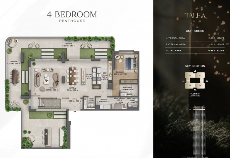 1 Bed, 2 Beds, 3 Beds Apartments & 4 Beds Penthouse