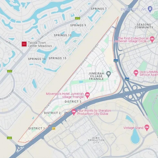 Jumeirah Village Circle, Dubai Sports City, Al Barsha, Motor City, Dubai Production City